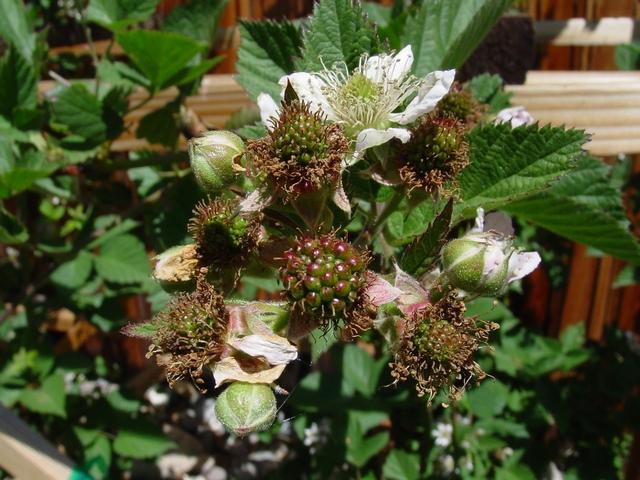 Berries are forming after blossoms...I can taste the blackberry pie ala mode already...